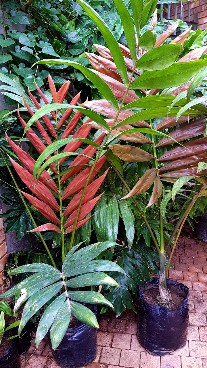 • Grown, packaged and shipped exclusively by Wekiva Foliage. A feather solitary palm to about 20-25 ft, with a spectacular, bright red new leaf, which stays red for up to 10 days. The leaflets are also very wide, thick, and shiny, so even without a new leaf it is very distinctive, with very fat and thick pinnate leaves, 10-12 feet long. Easy to grow. This is a must have in the garden.