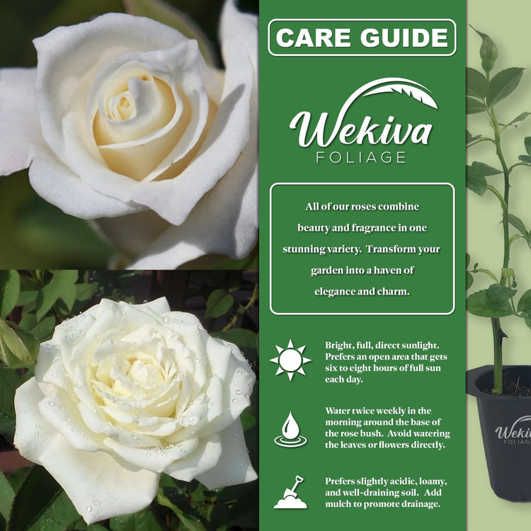 - Elegant White Blooms: Features large, classic hybrid tea rose blooms in a creamy white hue. The flowers emit a strong, pleasant fragrance and bloom repeatedly from late spring through fall, adding beauty and fragrance to any garden.