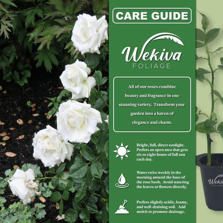 • Fragrant Blooms: Delight your senses with the pure, clean white blooms of this exceptional hybrid tea rose, emitting a refreshing citrus fragrance that fills your garden with aromatic bliss.