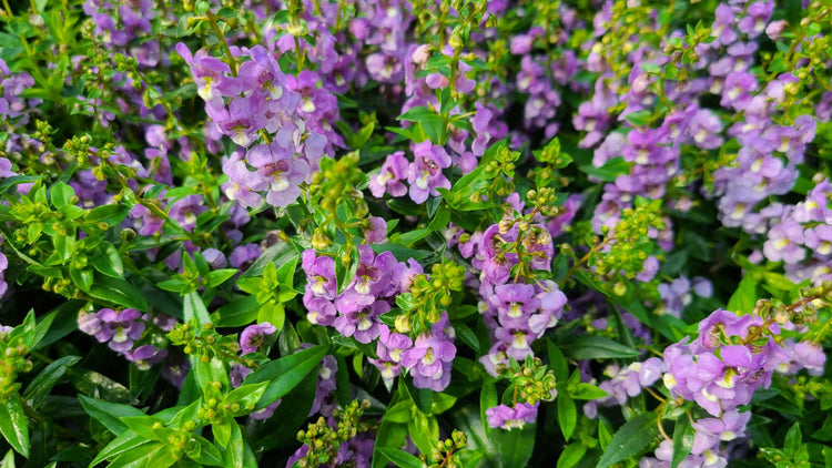 - Blue Angelonia is lined with sky blue flowers with white throats.