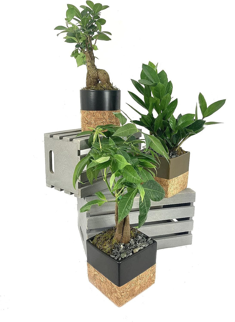 Bonsai Cork Planter - Live Plants in 5 Inch Decorative Pots - Plant Variety is Grower's Choice Based on Health, Beauty and Availability - Indoor Bonsai Houseplants for The Home