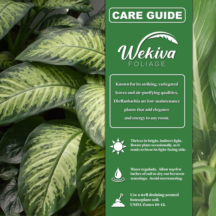 - Physical Characteristics: The Dieffenbachia 'Cougar' boasts broad, glossy leaves with a distinctive variegation of creamy white and pale green. These bold, patterned leaves make a dramatic statement, adding both texture and visual interest to any space.