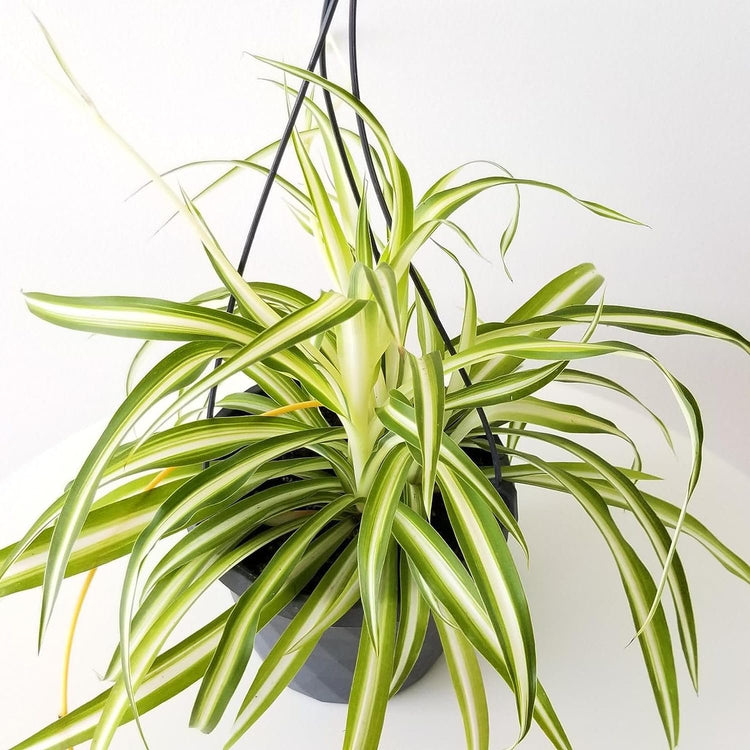 - Prefers consistently moist soil but is forgiving if you occasionally miss a watering. Allow the top inch of soil to dry between waterings to prevent overwatering. A simple watering routine will keep your Spider Plant lush and healthy.