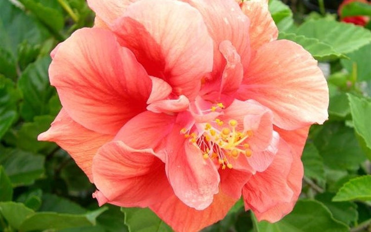 - The tropical hibiscus 'Jane Cowl' produces double, sweet coral-pink blossoms. Each petal is wavy and ruffled, having a crepe paper texture and are a stronger pink at the base.