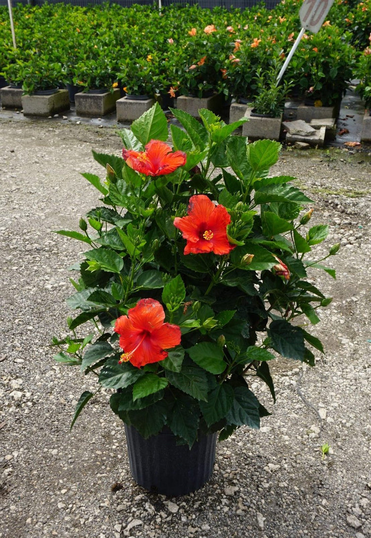 - An incredibly profuse blooming selection with 4-inch red flowers against glossy, rich green leaves. A versatile plant for screening, background specimen and containers.