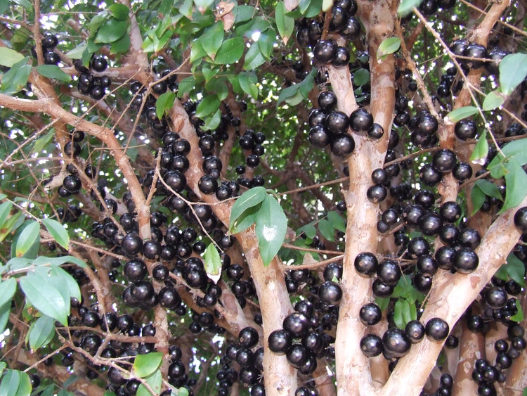 - Grown, packaged and shipped exclusively by Wekiva Foliage. Little known outside of its native region of Brazil, jaboticaba fruit trees are members of the myrtle family, Myrtaceae. They are very interesting trees in that they bear fruit on old growth trunks and branches, making the tree look much like it’s covered with purple cysts.