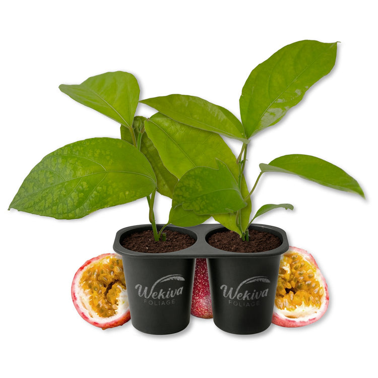 - Striking Physical Characteristics: The Passion Fruit Plant is renowned for its stunning purple and white flowers that attract attention in any garden setting. Its lush, glossy green leaves form a dense canopy, while the vine produces oval fruits with bright yellow pulp inside. The dramatic combination of foliage, flowers, and fruit ensures year-round ornamental appeal.