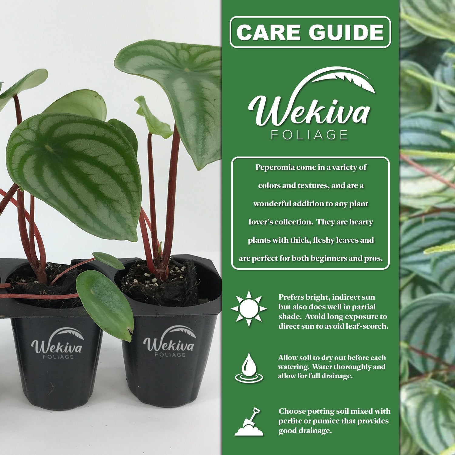 - Watering Frequency: Water when the top 1-2 inches of soil are dry to the touch. Be careful not to overwater as Peperomia does not like sitting in waterlogged soil. Let excess water drain to prevent root rot.