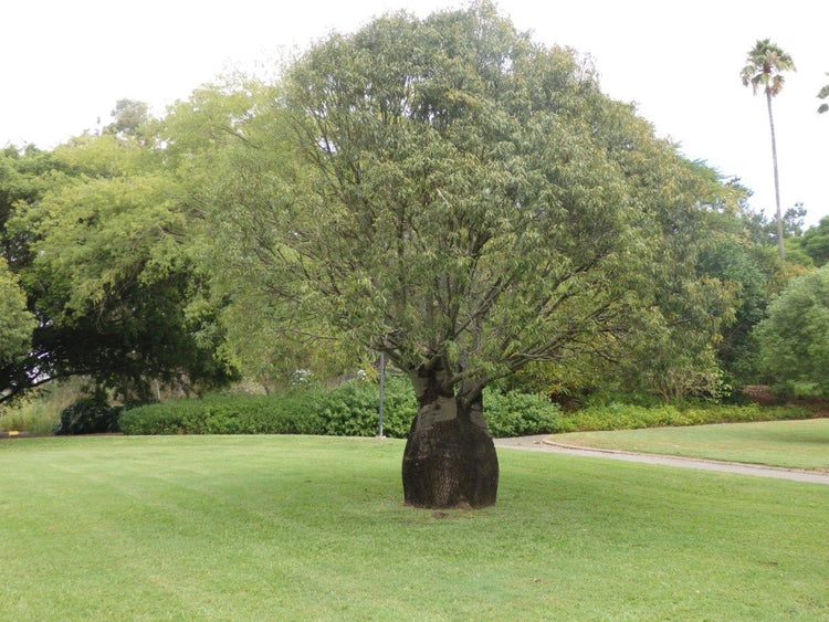 - A generally small tree with a trunk that is typically swollen at the base. Grows up to 60 feet in the wild. Leaves are narrowly dissected (finger-like).