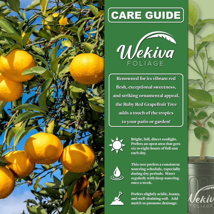 - Sunlight Requirements: The Ruby Red Grapefruit Tree thrives in full sun, requiring at least 6–8 hours of direct sunlight per day. Placing the tree in a south-facing location ensures optimal growth and fruit production, especially in temperate regions or when grown in a container.