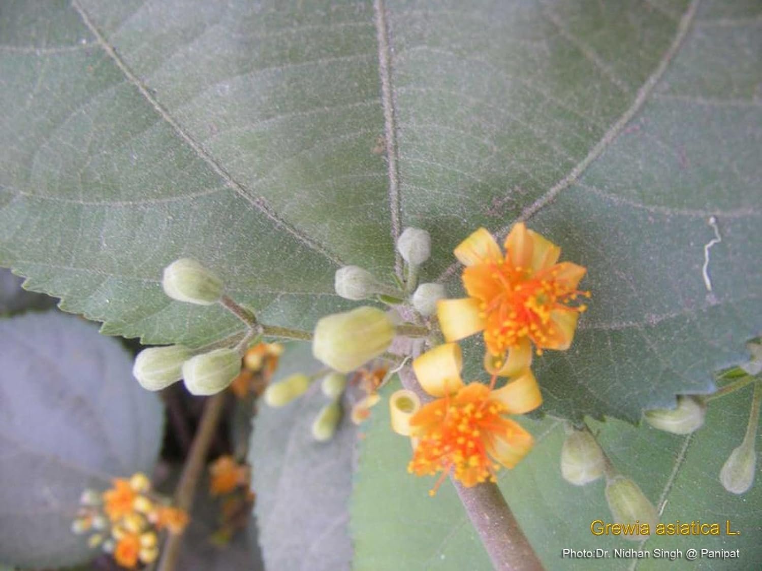 Grewia asiatica, also known as Phalsa or Indian Sherbet berry, is a seasonal plant that produces edible drupes. The fruit is purple and grape-sized, with a sweet and sour taste. It's often mistaken for a blueberry. The fruit is popular in India for making soft drinks and fruit drinks during the summer. It's also used in sherbets. The fruit is high in vitamins, trace minerals, and antioxidants. The Grewia asiatica plant is a small tree or shrub native to southern Asia. It has rough, gray bark and drooping branches. The leaves are round and plump with serrated edges.
