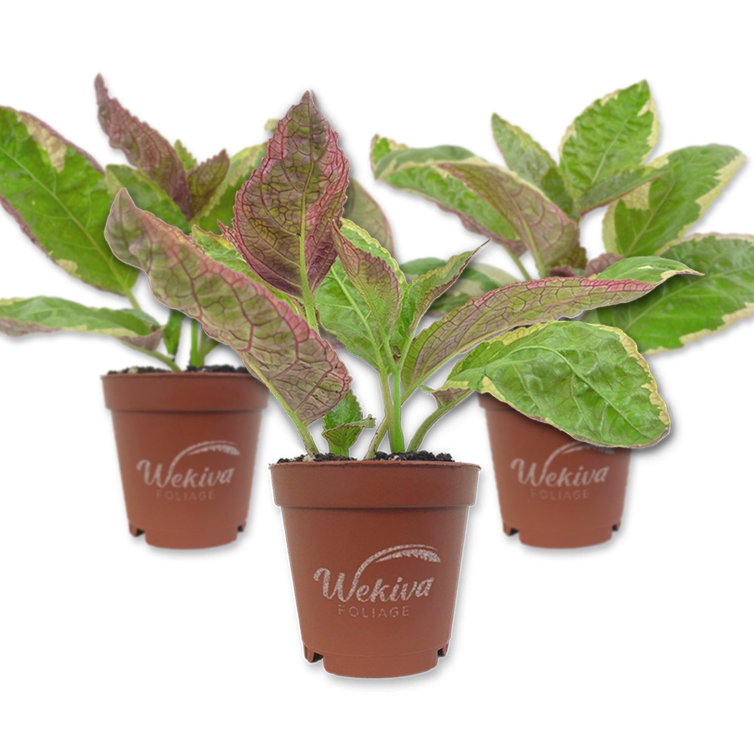 The Snow White Waffle Plant (Strobilanthes alternata 'Snow White') is a striking tropical foliage plant admired for its uniquely textured leaves and compact growth habit. Its foliage features a quilted, “waffle-like” surface, with a mix of green, cream, and soft pink tones that brighten up any indoor or shaded outdoor space. This plant’s natural variegation creates an eye-catching display that brings both color and texture to containers, mixed planters, or as a standalone decorative houseplant. Its trailing nature makes it well-suited for hanging baskets or for placement on shelves where its foliage can cascade gracefully. Whether you are looking for a plant to liven up a windowsill, add interest to a shaded patio, or create contrast in a collection of greenery, the Snow White Waffle Plant is an excellent choice for adding visual charm and tropical character.