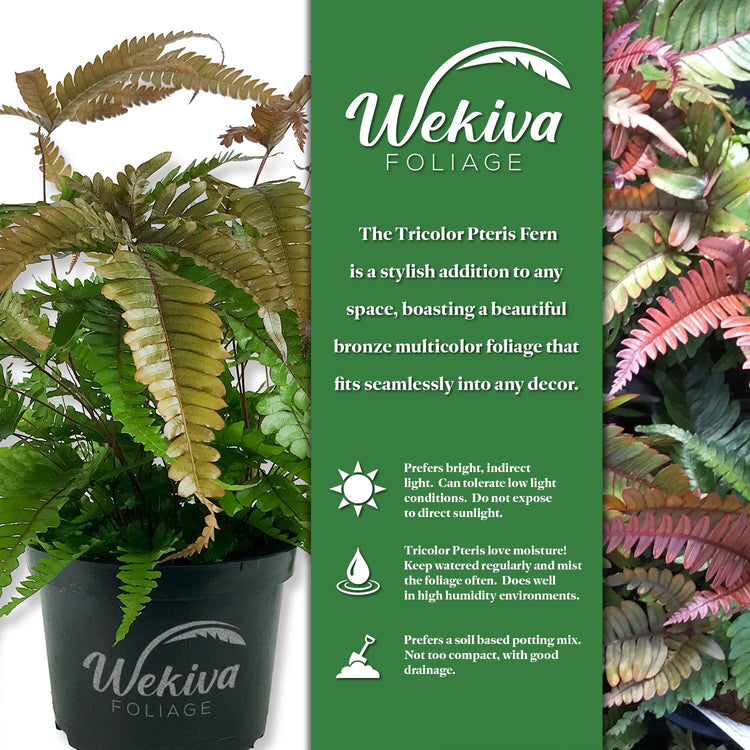 - The unique coloration of its fronds adds a decorative touch to any room. Perfect for small spaces, desktops, and indoor gardens. Like many ferns, the Tricolor Pteris helps improve indoor air quality by filtering pollutants.