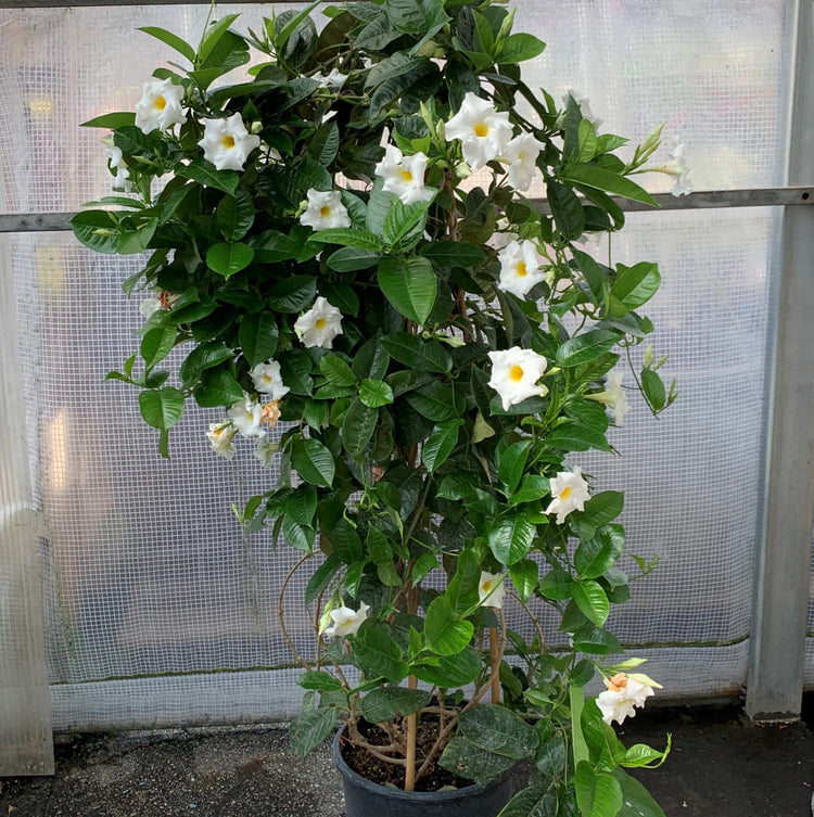- Grown, packaged and shipped exclusively by Wekiva Foliage. Mandevilla, also known as rocktrumpet, is a genus of flowering vines that grow in tropical and subtropical climates. The five-petal flowers are often showy and fragrant, typically coming in shades of pink, red, and white, occasionally with yellow throats.