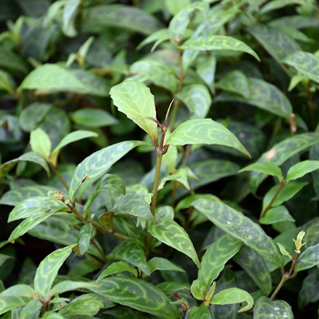 The Zebra Basket Vine, known as Aeschynanthus Longicaulis, is a visually captivating trailing plant prized for its striking foliage and graceful cascading growth. Its lance-shaped leaves are deep green with a dramatic zebra-like pattern of maroon or purple veining on the underside, creating a bold contrast when viewed from below. This tropical beauty is native to Southeast Asia and thrives in warm, humid environments. When grown under the right conditions, the Zebra Basket Vine produces tubular, reddish-orange flowers that resemble small lipsticks emerging from dark bracts—adding seasonal bursts of color to its already exotic appearance. With its elegant trailing vines and ornamental leaves, it makes an ideal choice for hanging baskets, wall planters, or as a trailing feature on shelves. The Zebra Basket Vine adapts well to indoor environments, and with minimal care, it will thrive and continue to bring a lush, vibrant touch to any room. Whether used as a standalone statement piece or combined with other tropicals for a layered display, this plant offers both visual appeal and dependable performance.